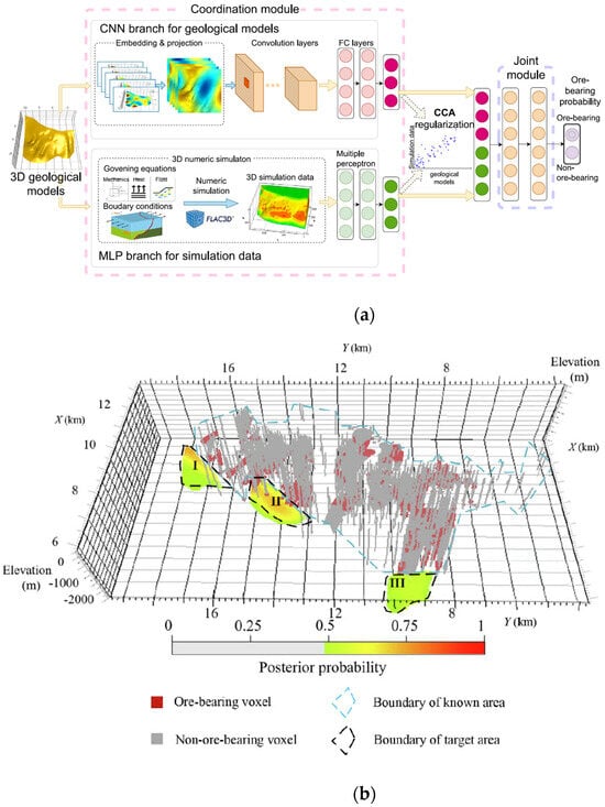 - Zheng, Y.; Deng, H.; Wu, J.J.; Xie, S.F.; Li, X.Y.; Chen, Y.D.; Li, N.; Xiao, K.Y.; Pfeifer, N.; Mao, X.C. Deep multimodal fusion for 3D mineral prospectivity modeling: Integration of geological models and simulation data via canonical-correlated joint fusion networks. Comput. Geosci. 2024, 188, 105618. [Google Scholar] [CrossRef]