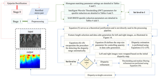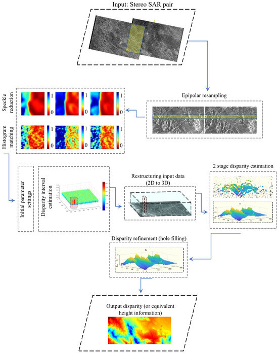 Although image rectification and search-space reduction are critical for accurate elevation modeling, these topics exceed the scope of the present study. Readers are referred to [27,28,58] for detailed discussion on epipolar resampling techniques in non-georeferenced SAR imagery.