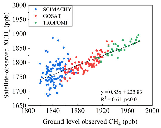 The data that support the findings of this study are available on public domain resources. The relevant data in this paper can be found in the following links. The SCIAMACHY XCH4 concentration data were provided by Bremen University in Germany (https://www.iup.uni-bremen.de/sciamachy/NIR_NADIR_WFM_DOAS/products/) (accessed on 2 May 2023). The GOSAT XCH4 data were obtained via the GOSAT Data Archive Service (GADS) (https://www.gosat.nies.go.jp/en/index.html) (accessed on 2 May 2023). The S5P XCH4 concentration data were obtained from the European Space Agency (ESA) (https://dataspace.copernicus.eu/) (accessed on 1 June 2025). The ground observations of CH4 concentrations were from the World Data Centre for Greenhouse Gases (WDCGG) (https://gaw.kishou.go.jp/) (accessed on 3 March 2024). The land cover data from MODIS were provided by Google Earth Engine.