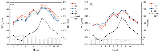 3.2. Temporal Variation in XCH4 in the Sichuan Basin