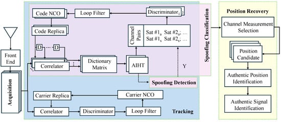Currently, the majority of anti-spoofing algorithms for GNSS receivers concentrate on spoofing detection [7,8,9]. Spoofing classification was accomplished by [10] through spoofing and authentic parameter estimation. However, merely detecting or classifying spoofing signals is not enough; the more challenging and crucial task lies in eliminating the impact of spoofing signals on receivers that have already been spoofed and ensuring the generation of authentic PVT results.