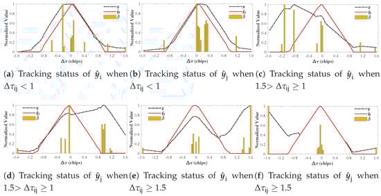 As shown in Equation (6), the postcorrelation vector is composed of two main components when the satellite signal is spoofed, namely, an authentic signal correlation component and a spoofing signal correlation component . The same conclusion can also be drown in any correlator outcome elements :