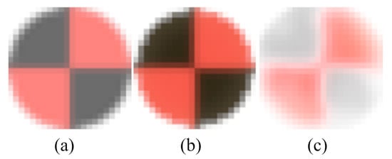 Three types of simplified synthetic objects used in the study: (a) Type A GCP; (b) Type B GCP; (c) Type C GCP.
