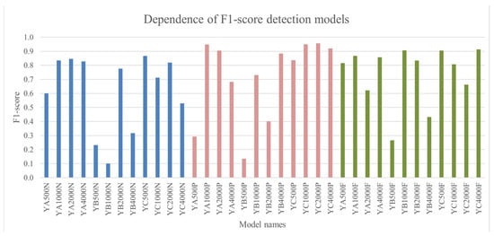 - 3 series: a set of 12 models in which all available augmentation parameters were used. These parameters were brightness, contrast, zoom, rotate, and crop, all with basic software value settings. This series is marked with the letter “F”.