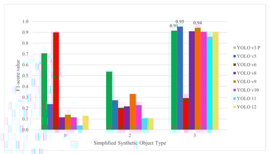 The number of CNN application areas is growing, which leads to the need for training data. The research conducted in this work aimed to obtain effective detection models trained only using simplified synthetic objects (SSOs). The research was conducted on inland shallow water areas, while images of bottom objects were obtained using a UAV platform. The work consisted in preparing SSOs, thanks to which composite images were created. On such training data, 120 models based on the YOLO (You Only Look Once) network were obtained. The study confirmed the effectiveness of models created using YOLOv3, YOLOv5, YOLOv8, YOLOv9, and YOLOv10. A comparison was made between versions of YOLO. The influence of the amount of training data, SSO type, and augmentation parameters used in the training process was analyzed. The main parameter of model performance was the F1-score. The calculated statistics of individual models indicate that the most effective networks use partial augmentation, trained on sets consisting of 2000 SSOs. On the other hand, the increased transparency of SSOs resulted in increasing the diversity of training data and improving the performance of models. This research is developmental, and further research should improve the processes of obtaining detection models using deep networks.
