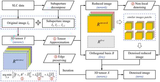 In this section, a novel method for suppressing speckle noise in SAR images is presented. We perform subaperture segmentation based on the SAR imaging mechanism to acquire subaperture images highly similar to the original one and then integrate these images into a three-dimensional tensor. Leveraging the global low-rank properties of the subaperture and original images, we apply low-rank decomposition and non-local regularization to eliminate speckle noise. This approach fully exploits the global similarity of the image, effectively suppressing speckle noise, as depicted in
