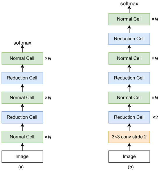 - Zoph, B.; Vasudevan, V.; Shlens, J.; Le, Q.V. Learning transferable architectures for scalable image recognition. In Proceedings of the IEEE conference on computer vision and pattern Recognition, Salt Lake City, UT, USA, 18–23 June 2018; pp. 8697–8710. [Google Scholar]