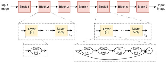 - Tan, M.; Chen, B.; Pang, R.; Vasudevan, V.; Sandler, M.; Howard, A.; Le, Q.V. Mnasnet: Platform-aware neural architecture search for mobile. In Proceedings of the IEEE/CVF Conference on Computer Vision and Pattern Recognition, Long Beach, CA, USA, 15–20 June 2019; pp. 2820–2828. [Google Scholar]