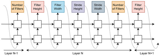 Zoph [54] and his team introduced a reinforcement learning approach where a Recurrent Neural Network (RNN) serves as the controller for neural architecture search. The method optimizes RNN parameters using reinforcement learning and represents the network structure as a variable-length encoding. The maximum number of layers is constrained, and the policy gradient method is employed to optimize the performance of the RNN controller. This approach leverages autoregressive control to efficiently navigate the architecture space, as illustrated in Figure 9.