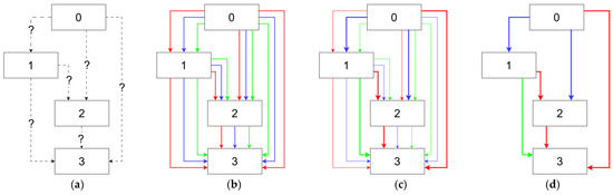 Figure 10 provides an overview of DARTS. Specifically, the entire search space is treated as a directed acyclic graph (DAG), where each node represents the output of the current layer, and multiple edges exist between nodes. Each edge represents a candidate operation for the network architecture. The softmax function is used to integrate the multiple edges between two nodes into a unified output, thus transforming discrete operations into continuous ones. Subsequently, gradient descent is applied to update the parameters of the entire DAG. While DARTS introduced efficient gradient-based optimization by formulating each edge’s output as a weighted summation of candidate operations, this design inherently creates computational bottlenecks. Specifically, maintaining simultaneous activation of all operators during search causes GPU memory consumption to scale linearly with the number of candidate operations. To address this critical limitation, recent advancements [85,86,87,88,89] have shifted toward stochastic architecture sampling through differentiable relaxations.