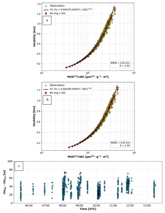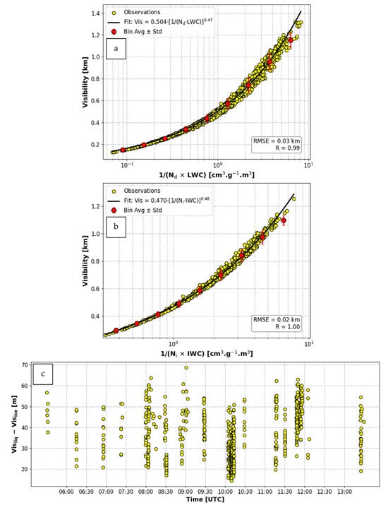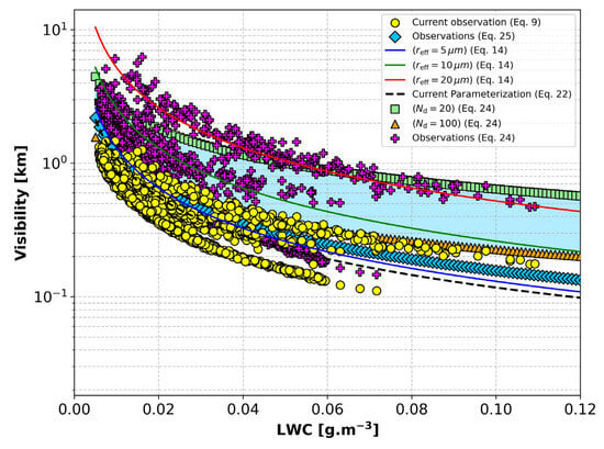 5.4. Visibility Comparisons Using Observations and Parameterizations
