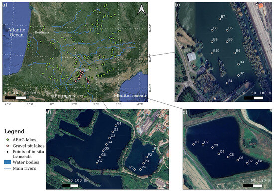 This work was developed under the scope of the XTREM-QUALITY project (https://www.spaceclimateobservatory.org/xtremquality, accessed on 2 August 2025), funded by the Adour Garonne Water Agency (Funding 2022-01027) and co-funded by the French Centre for Space Studies. The work on the gravel pit lakes was supported by the project STABLELAKE funded by the Office Français de la Biodiversité (OFB) and is part of the long-term Studies in Ecology and Evolution(SEE-Life) program of the CNRS.