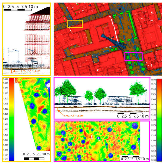 The Strasbourg data were published by the city of Strasbourg. The dataset has high classification accuracy. However, it could not be used for the training phase because of facades being included in the ‘other’ class rather than in the building class. However, the accuracy of the vegetation and ground and water classes can be accurately assessed.