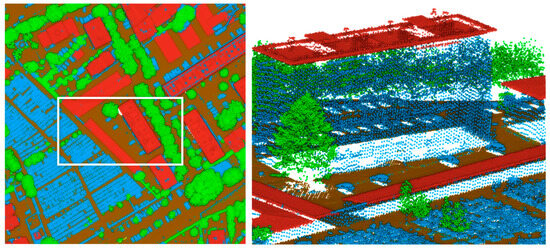Airborne laser scanning (ALS) point clouds are an important source of information for city-scale facility management and planning, building information retrieval, architectural heritage documentation, and creation of decision support systems. However, they can be used most efficiently when they are classified into a well-designed and meaningful set of semantic classes. Therefore, point cloud semantic segmentation often constitutes the first step in processing ALS data. The information about point cloud classification is used for many urban applications including tree and building modelling (e.g., [1,2]), building reconstruction (e.g., [3]), creating 3D city models (e.g., [4]), roof parametrization for the purpose of solar panel installation (e.g., [5]), building damage monitoring (e.g., [6]), and many others. As a result, its accuracy highly influences the accuracy of the delivered products. At the same time, the amount and complexity of point cloud data make it impossible to manually label all of the points of a large-scale urban scene. Therefore, a reliable and automatic point cloud semantic segmentation is of key importance for many ALS data applications.