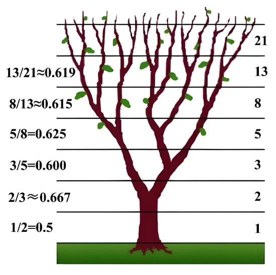 Fortunately, many crops’ structures like branches, leaves, etc. satisfy the Fibonacci Sequence [45], which can be derived with Equation (8).