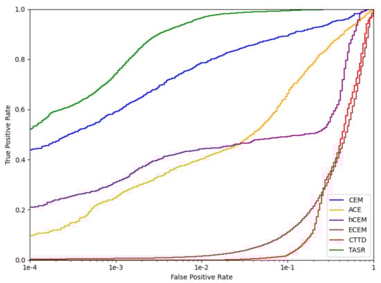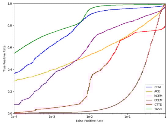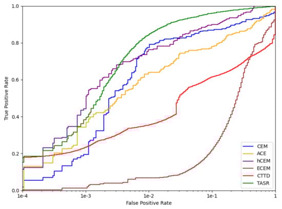 ROC curves comparing the detection performance of all benchmarked methods on the SSD dataset.