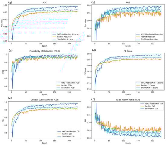 - Innovatively Incorporate Deep Learning Technology into WTC Detection: In order to solve the problem of WTC detection using weather radar, deep learning detection technology was introduced on the basis of the traditional existing detection methods. The experimental results demonstrate that the proposed model achieves an accuracy of 98.21% on the test set, with a precision of 97.52% and a false alarm rate of 1.72%. The detection speed reaches the level of seconds, enabling near real-time detection.