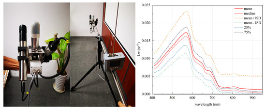 TriOS hyperspectral radiometer and spectral curves of measured water-leaving radiance data.