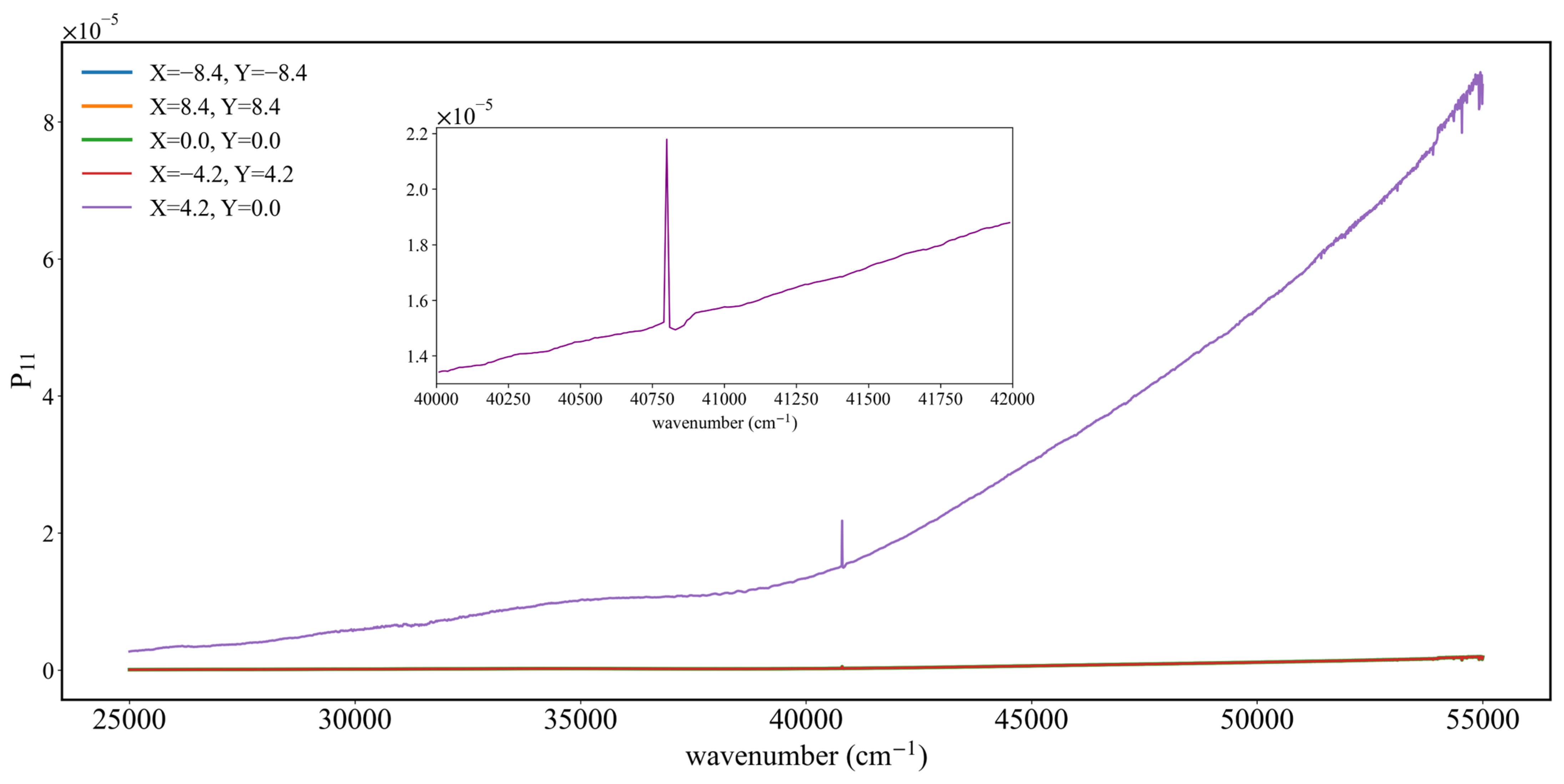 4.2. 3D Monte Carlo Simulation with Point Sources for 1800–4000 cm−1 and 25,000–55,000 cm−1