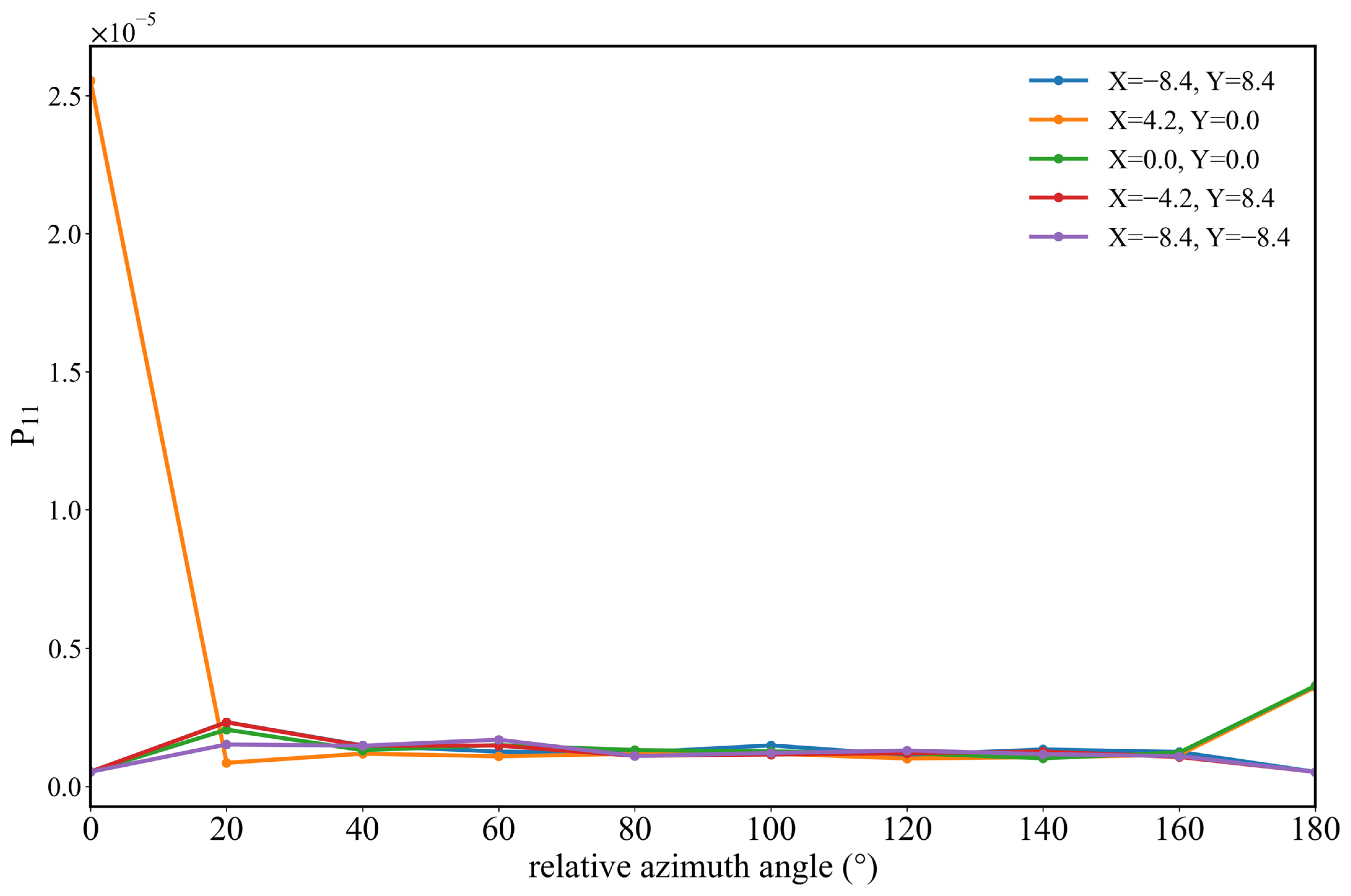 Relative azimuth angle | degree | 0, 20, 40, …, 180 |