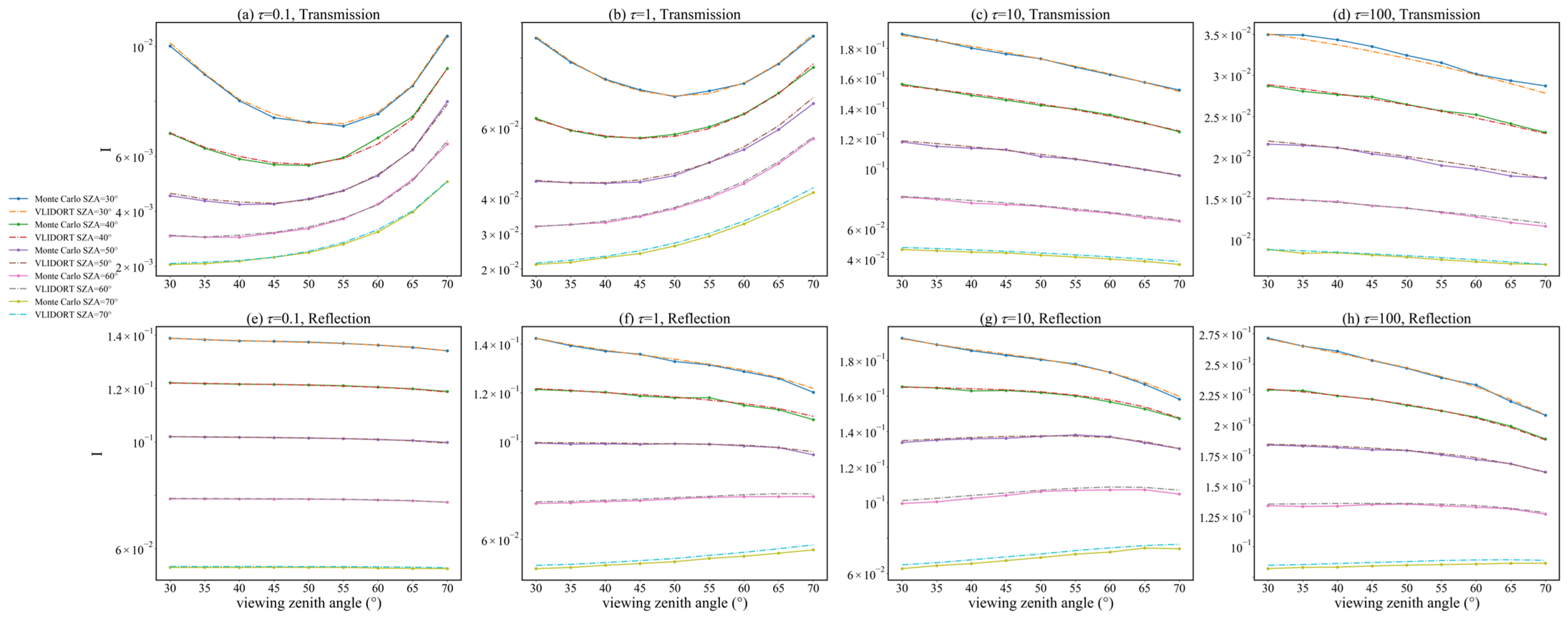 - Sun, B.; Gao, C.; Spurr, R. Scalar thermal radiation using the adding-doubling method. Opt. Express 2022, 30, 30075–30097. [Google Scholar] [CrossRef]