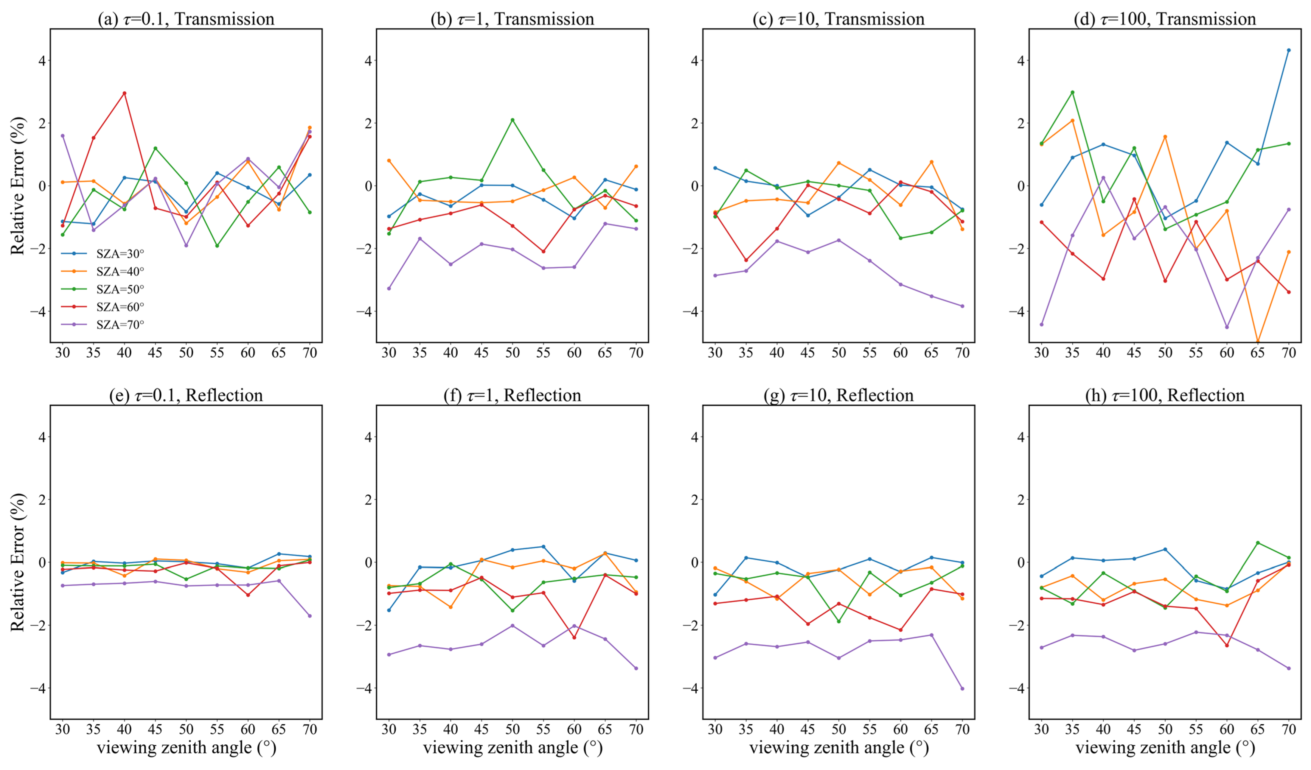 - Stamnes, K.; Tsay, S.-C.; Wiscombe, W.; Laszlo, I. DISORT, A General-Purpose Fortran Program for Discrete-Ordinate-Method Radiative Transfer in Scattering and Emitting Layered Media: Documentation of Methodology. 2000. Available online: http://www.rtatmocn.com/disort/docs/DISORTReport1.1.pdf (accessed on 7 January 2025).