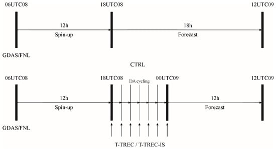 - Shen, F.; Min, J.; Xu, D. Assimilation of radar radial velocity data with the WRF Hybrid ETKF–3DVAR system for the prediction of Hurricane Ike (2008). Atmos. Res. 2016, 169, 127–138. [Google Scholar] [CrossRef]