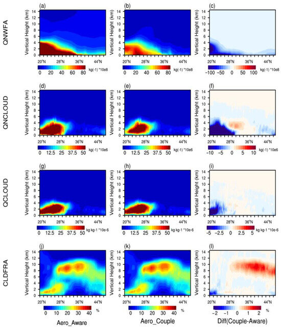 3.2. Impact of QNWFA on Cloud Microphysical Processes and Cloud Fraction