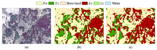 With the development of aerial vehicle technology, sub-meter remote sensing classification of wetlands has been widely used. In high spatial resolution, there is less mixed feature information in each raster, which increases the discrimination of ground objects. Zweig et al. used 0.5 m images to classify nine vegetation communities in the wetland landscape of Florida Water Source Reserve, which demonstrated the feasibility of high-resolution remote sensing for vegetation community classification [26]. Li et al. used 10 cm imagery to classify four vegetation communities with an overall accuracy of 95% [16].