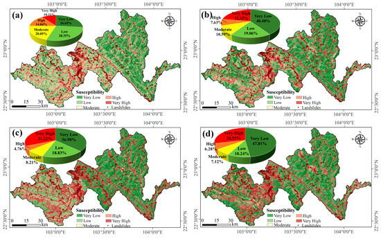 The results of LSM. (a) Stacking model; (b) F-stacking model; (c) H-stacking model; (d) HF-stacking model.