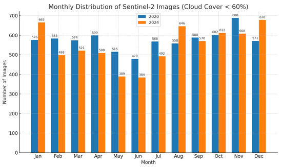 Monthly Distribution of Sentinel-2 Images in 2020 and 2024.