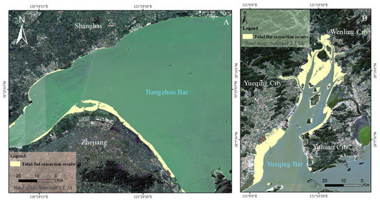 While the national-scale assessment offers a comprehensive overview of classification performance, additional local-scale validations were carried out in representative coastal environments to evaluate the system’s applicability under complex geomorphological features and intensive anthropogenic influences. For this purpose, two representative bays in Zhejiang Province—Hangzhou Bay and Yueqing Bay—were selected as local-scale case study sites.