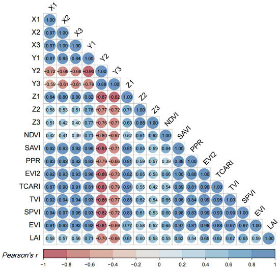 Pearson correlation heat map between selected variables and LAI. The numbers represent Pearson’s r.