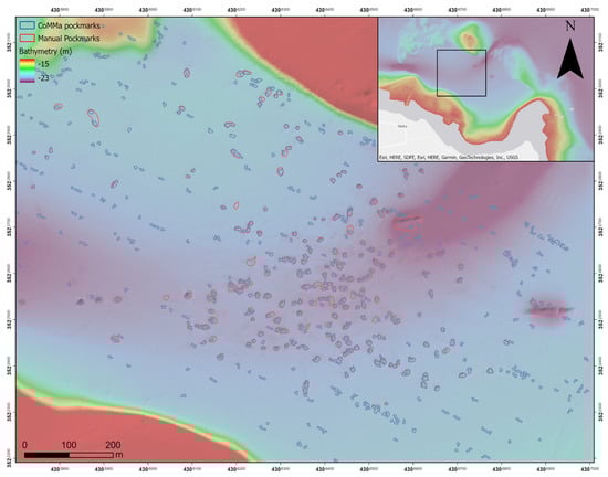 CoMMa exported and manually delineated pockmarks in the validation area.