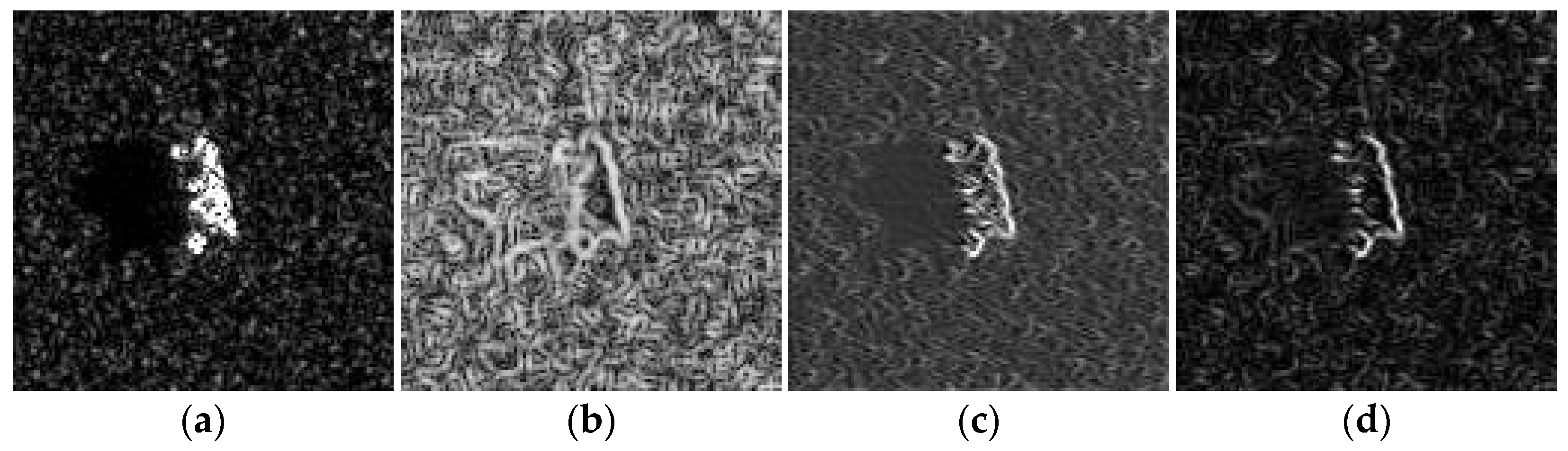 25] were selected as benchmark algorithms. The former is a classical approach in SAR image detection and has been widely applied in practical detection, while the latter—a recently proposed saliency algorithm for SAR ground targets by Ni et al.—demonstrates outstanding object highlighting performance on the MSTAR dataset. Since reference [