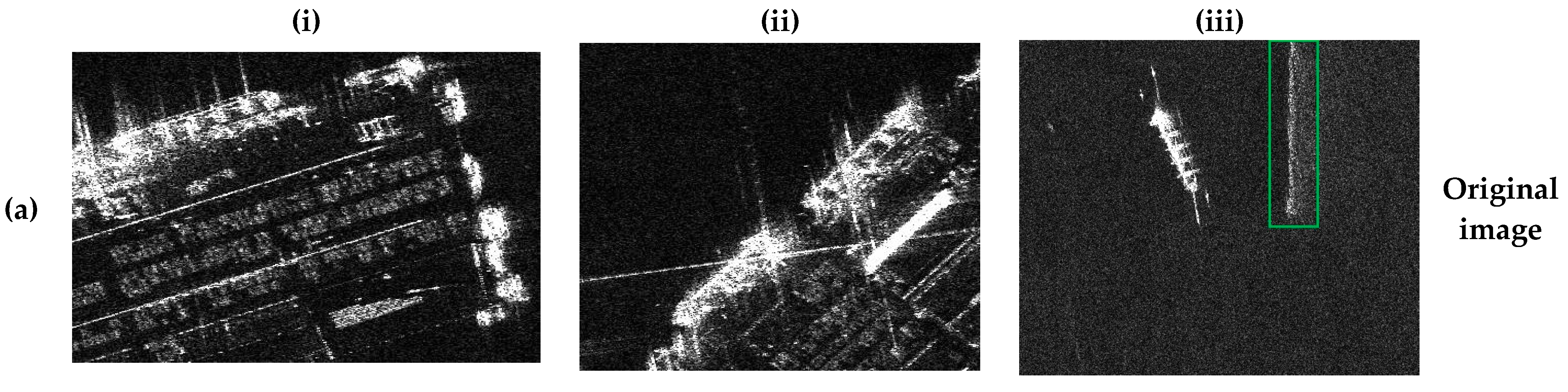 Compared with CFAR detection, saliency-based methods often do not require pre-processing for noise reduction and are not reliant on specific clutter models. Meanwhile, saliency detection can integrate multiple features, including echo power, local contrast, global contrast, and so on, fully exploiting the various information carried by SAR images. It can be said that saliency-based methods successfully circumvent several major obstacles that are difficult to overcome by traditional algorithms represented by CFAR detectors.