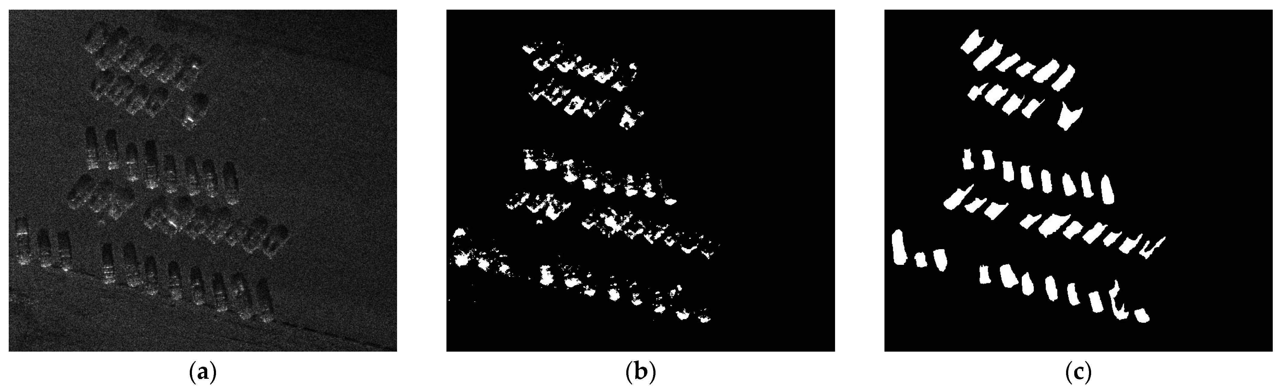 55] were chosen as baseline algorithms. The latter two are improved CFAR strategies proposed in recent years for SAR maritime targets: DC-CFAR employs superpixel-level processing to mitigate speckle noise and incorporates a screening mechanism to reduce computational redundancy; SPG-CFAR similarly utilizes superpixel-level processing for noise suppression and specifically employs the Gamma distribution for clutter modeling tailored to maritime background.