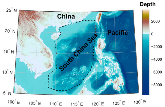 Location of the study area in the SCS (the region within the dashed box).