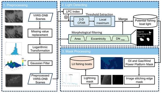 Flowchart of the lit fishing boat detection algorithm in the SCS.