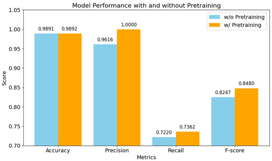 To evaluate the effectiveness of the proposed method, we use four standard performance metrics: Accuracy, Precision, Recall, and F1-Score. These metrics are defined as follows. Let , , , and denote the number of true positives, true negatives, false positives, and false negatives, respectively. Then