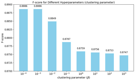 The hyperparameter governs the relative contribution of the clustering loss within the overall training objective of the MC-MD model. To evaluate its effect, Figure 9 analyzes the model’s F1-Score across a range of values, spanning from to . When is set to a small value (e.g., or ), the model achieves its highest F1-Score (0.8886), indicating optimal performance in maneuver detection. In this regime, the clustering loss exerts minimal influence, allowing the model to focus primarily on learning global temporal structures through masked reconstruction—an essential factor for capturing anomalous behavior in satellite motion. As increases to a moderate range (e.g., to 1), the F1-Score gradually declines. This suggests that assigning greater weight to the clustering loss may lead the model to overfit local structural patterns in the latent space, while underemphasizing broader temporal dependencies necessary for accurately identifying maneuver events. With large values (e.g., 10 to 1000), the degradation becomes more pronounced, with the clustering loss dominating the training objective. This imbalance reduces the model’s reconstruction quality and negatively impacts overall detection performance. In summary, the analysis indicates that a small value provides a well-calibrated trade-off between structural regularization and representation generalization. Excessive weighting of the clustering loss undermines model robustness and impairs its ability to generalize for complex maneuver dynamics.