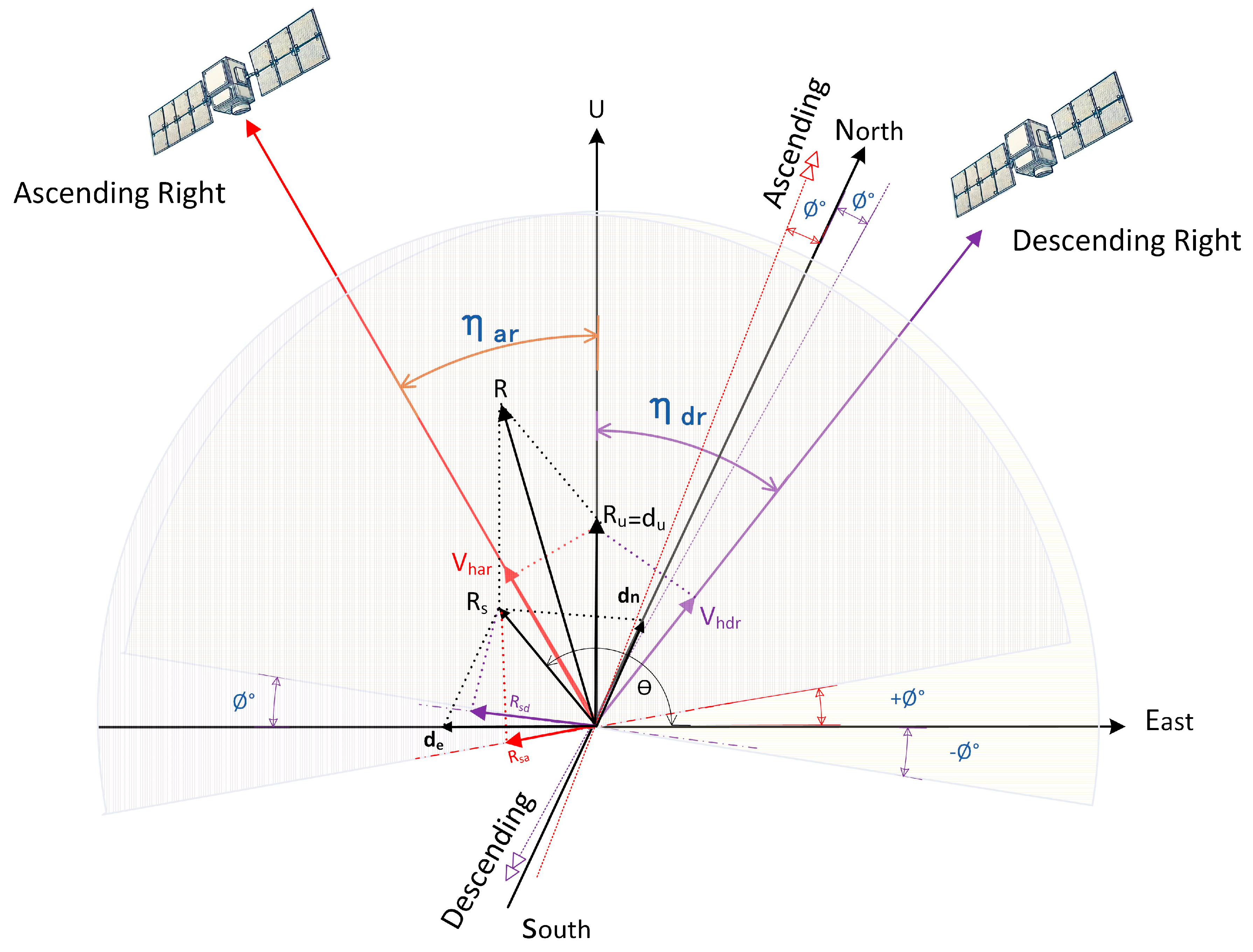 - Brouwer, W.; Hanssen, R. Estimating three-dimensional displacements with InSAR: The strapdown approach. J. Geod. 2024, 98, 110. [Google Scholar] [CrossRef]