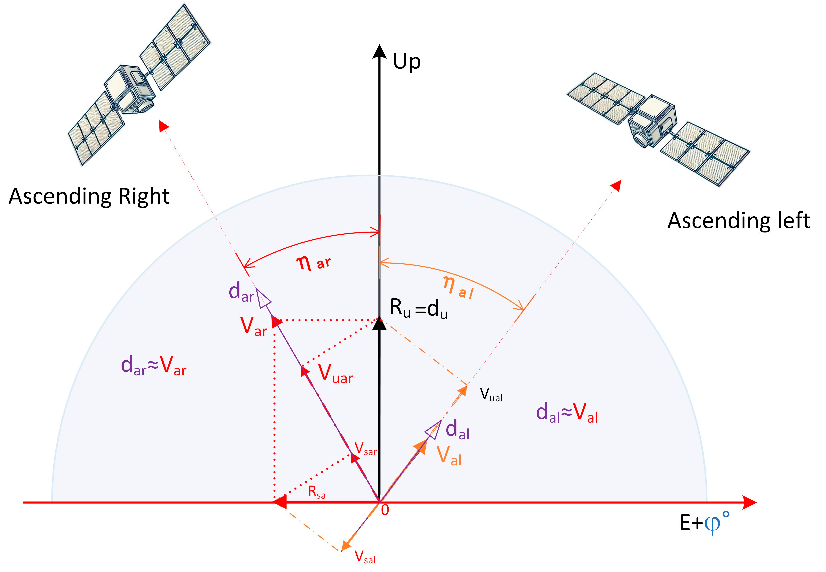 2.3. LOS Deformation Decomposition Model in Local Orthogonal Plane