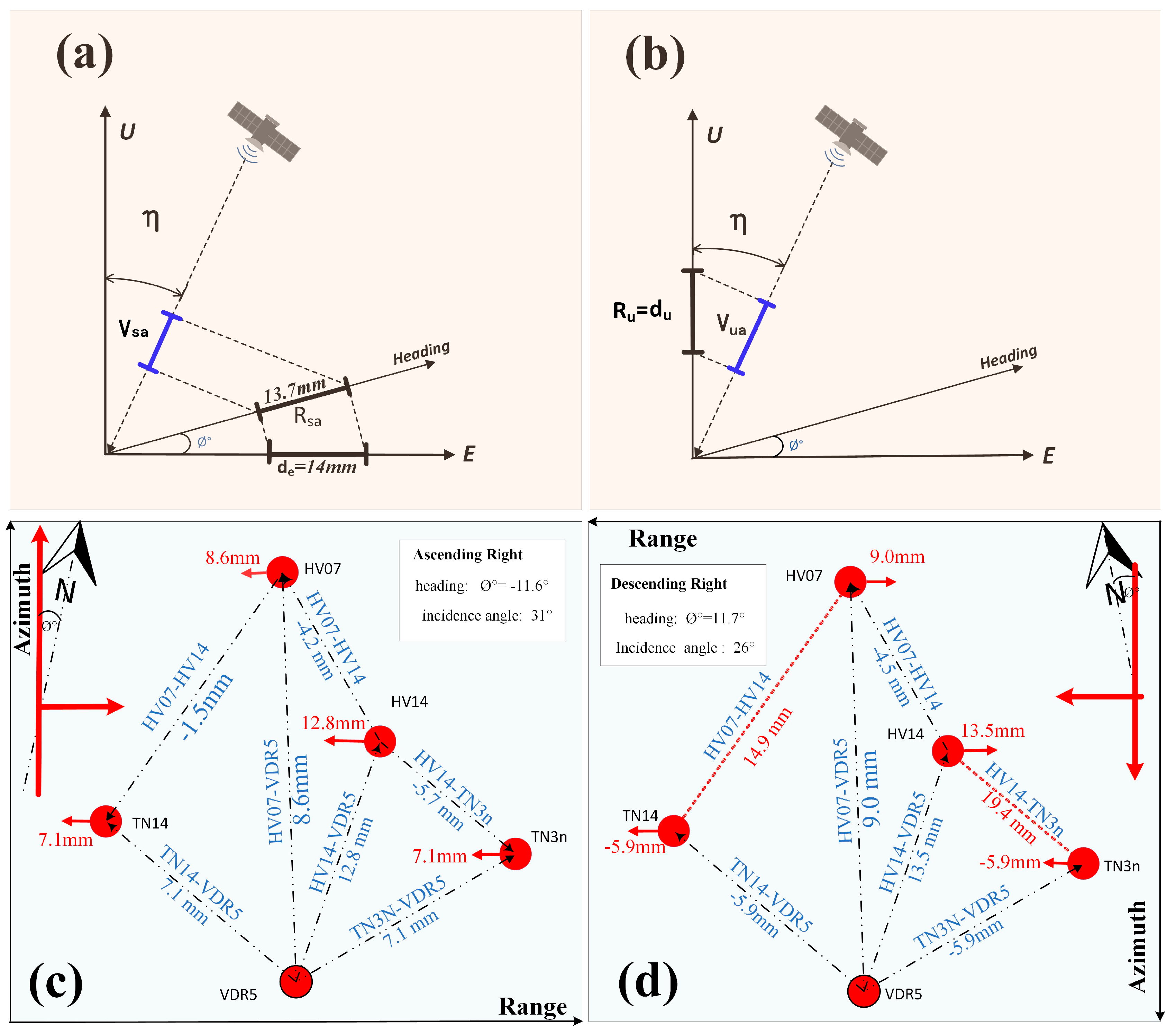 - Brouwer, W.S.; Hanssen, R.F. A treatise on InSAR geometry and 3-D displacement estimation. IEEE Trans. Geosci. Remote Sens. 2023, 61, 1–11. [Google Scholar] [CrossRef]