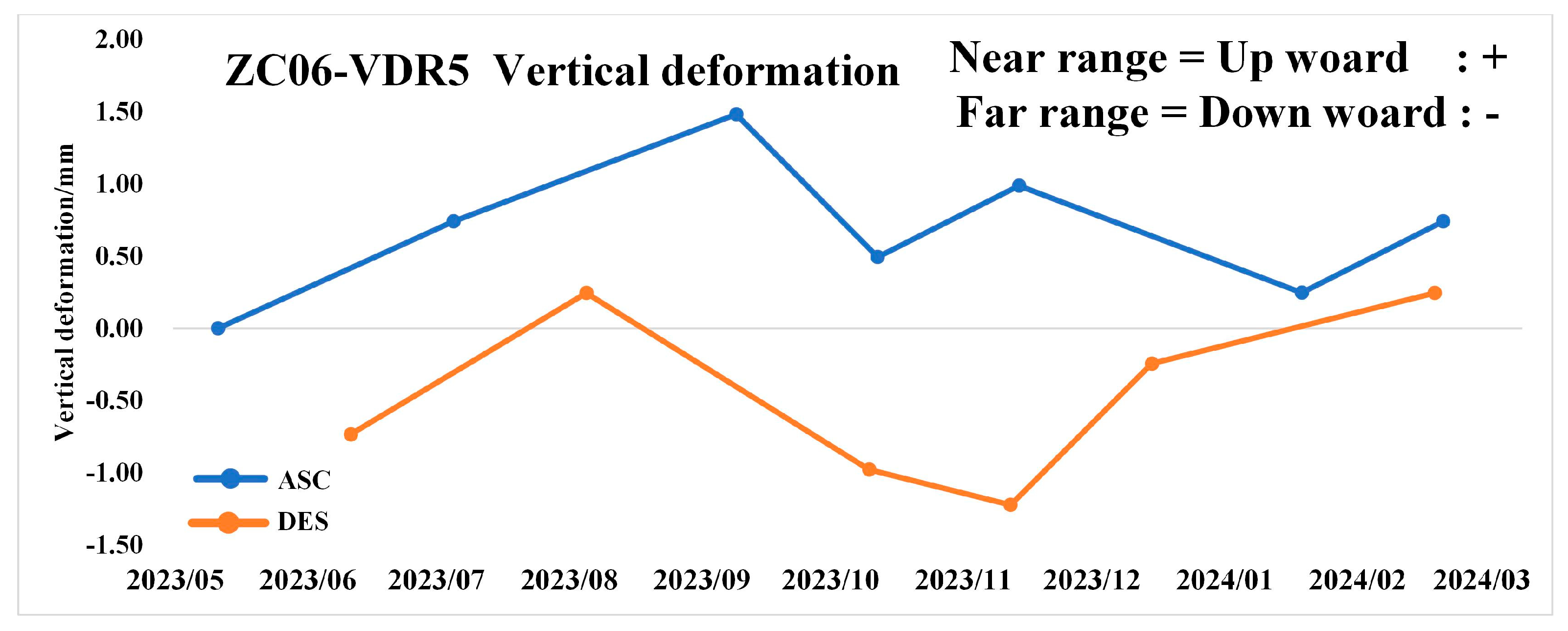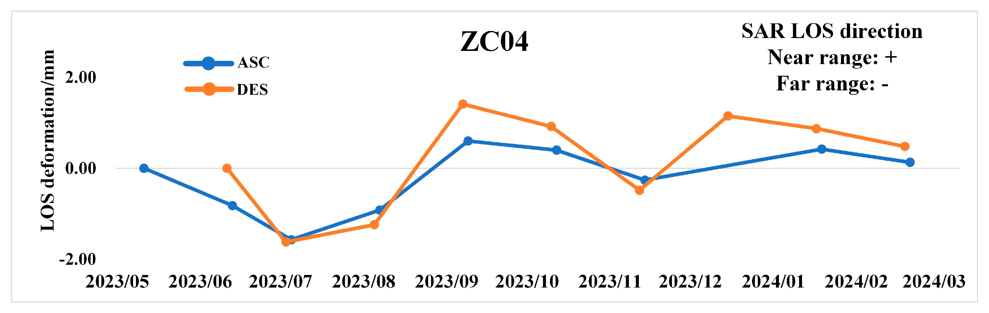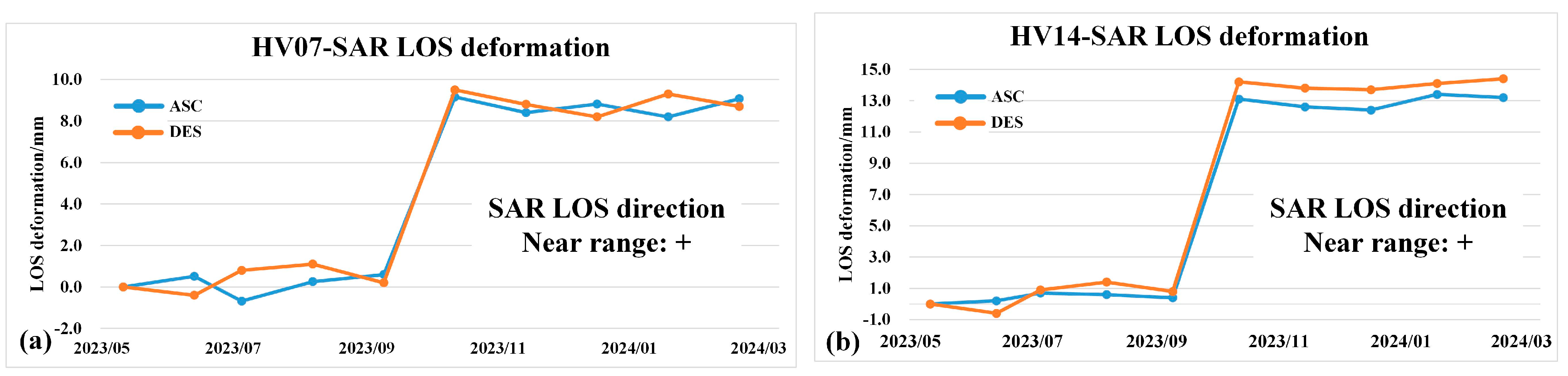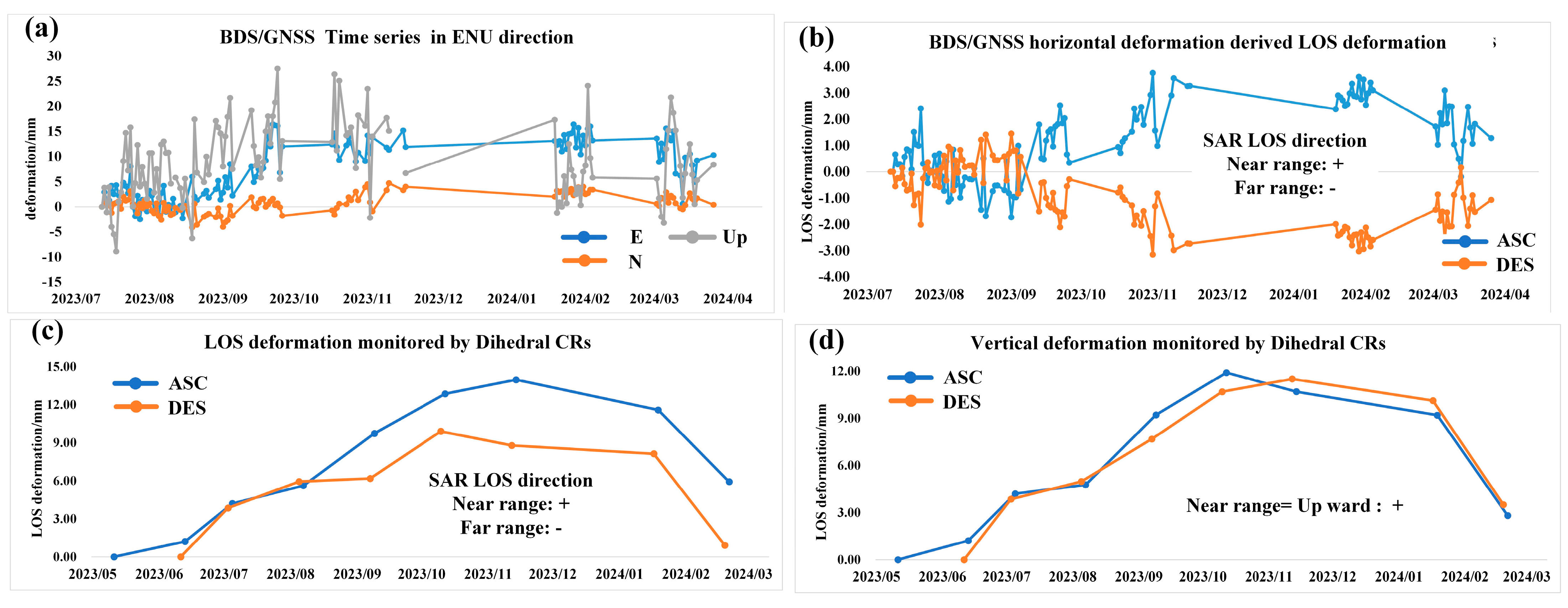4.2. Man-Made Horizontal Deformation in LOS Direction Monitored with Symmetric Dihedral CR