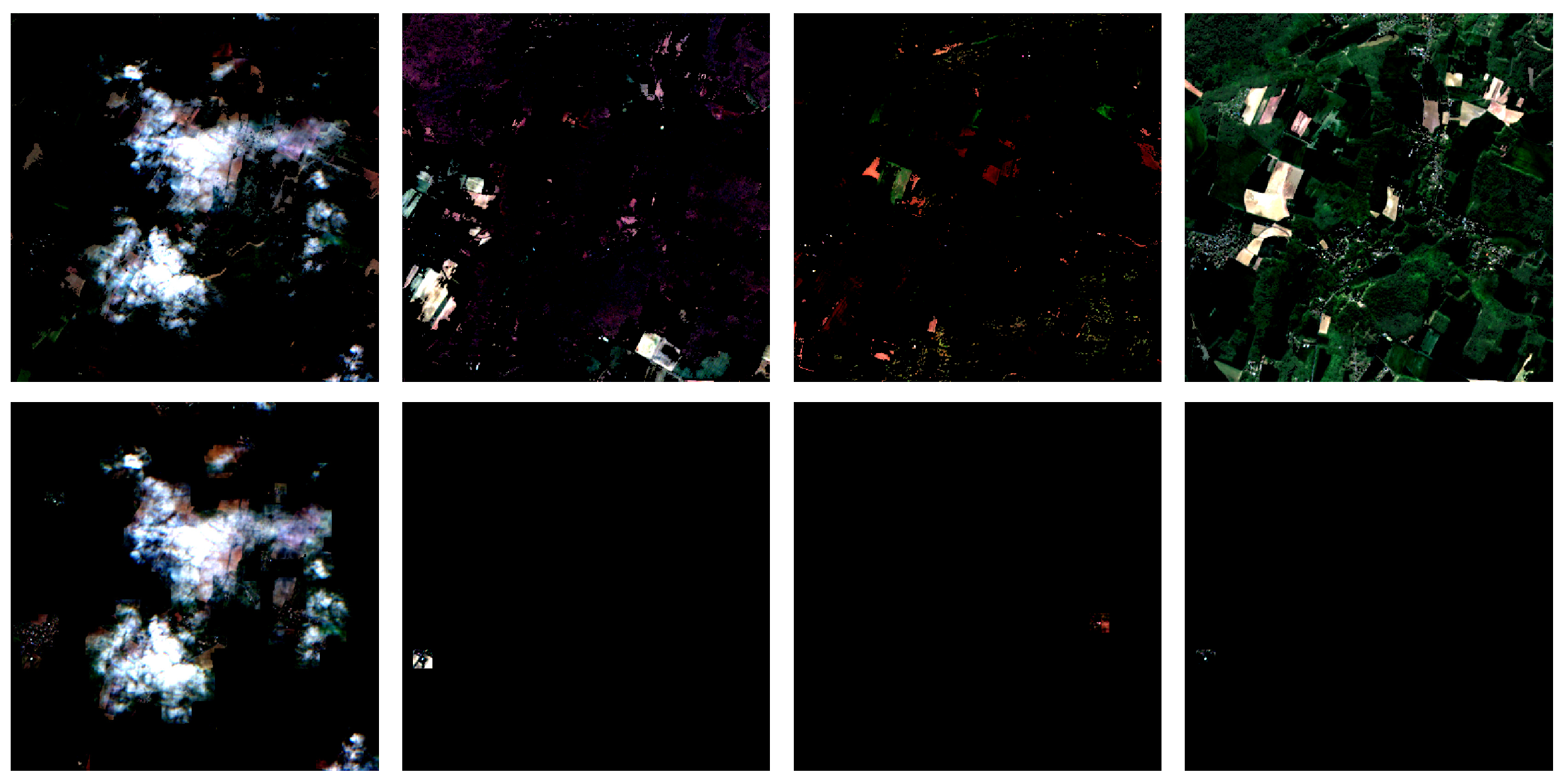 Figure 6. The Eure dataset, captured by Sentinel-2 with a spatial resolution of 10 meters, consists of four time nodes (each with four spectral bands), one of which is contaminated by clouds. The France dataset, acquired by Landsat-8 with a spatial resolution of 30 meters, also contains four time nodes (each with seven bands), two of which are cloud-contaminated.