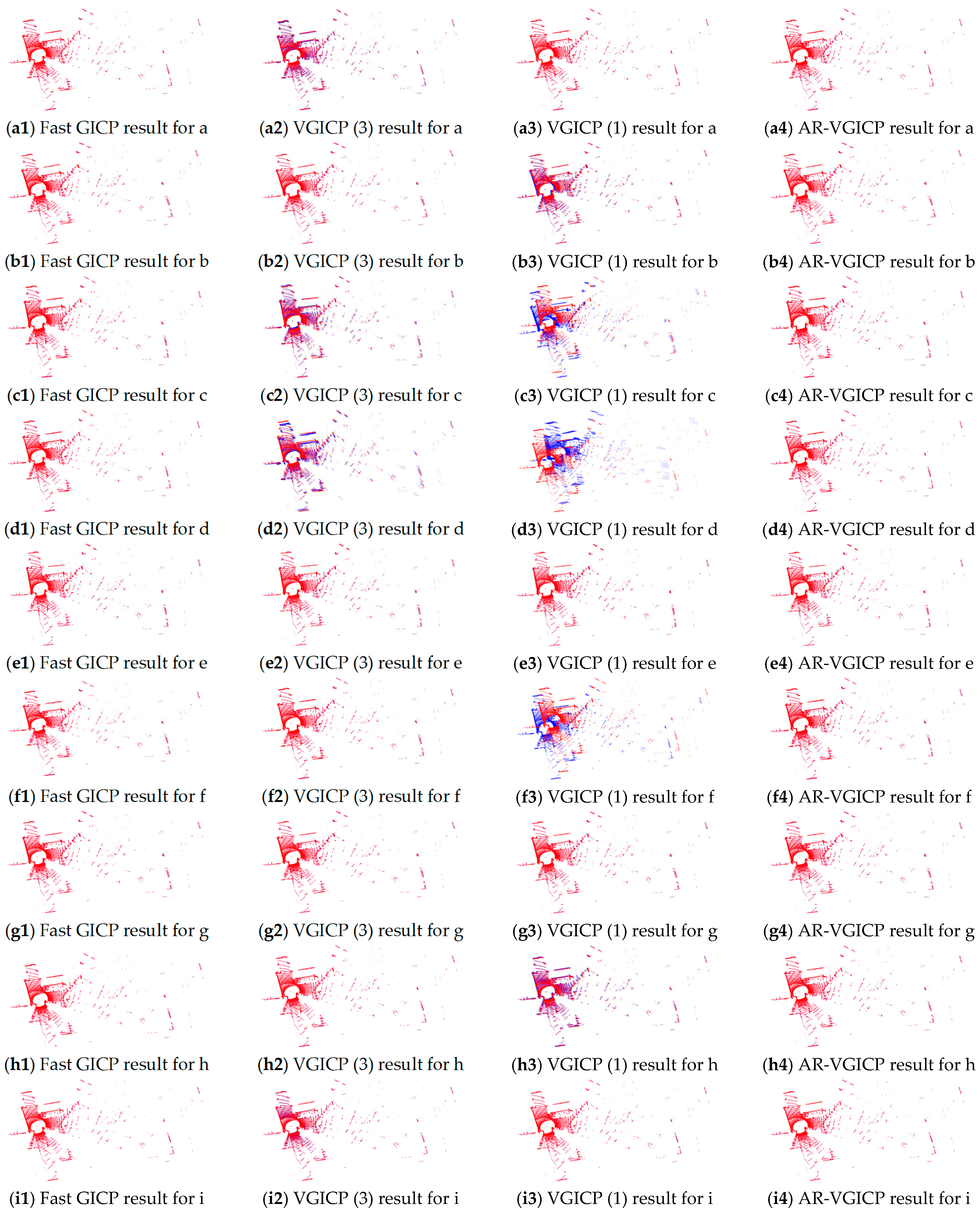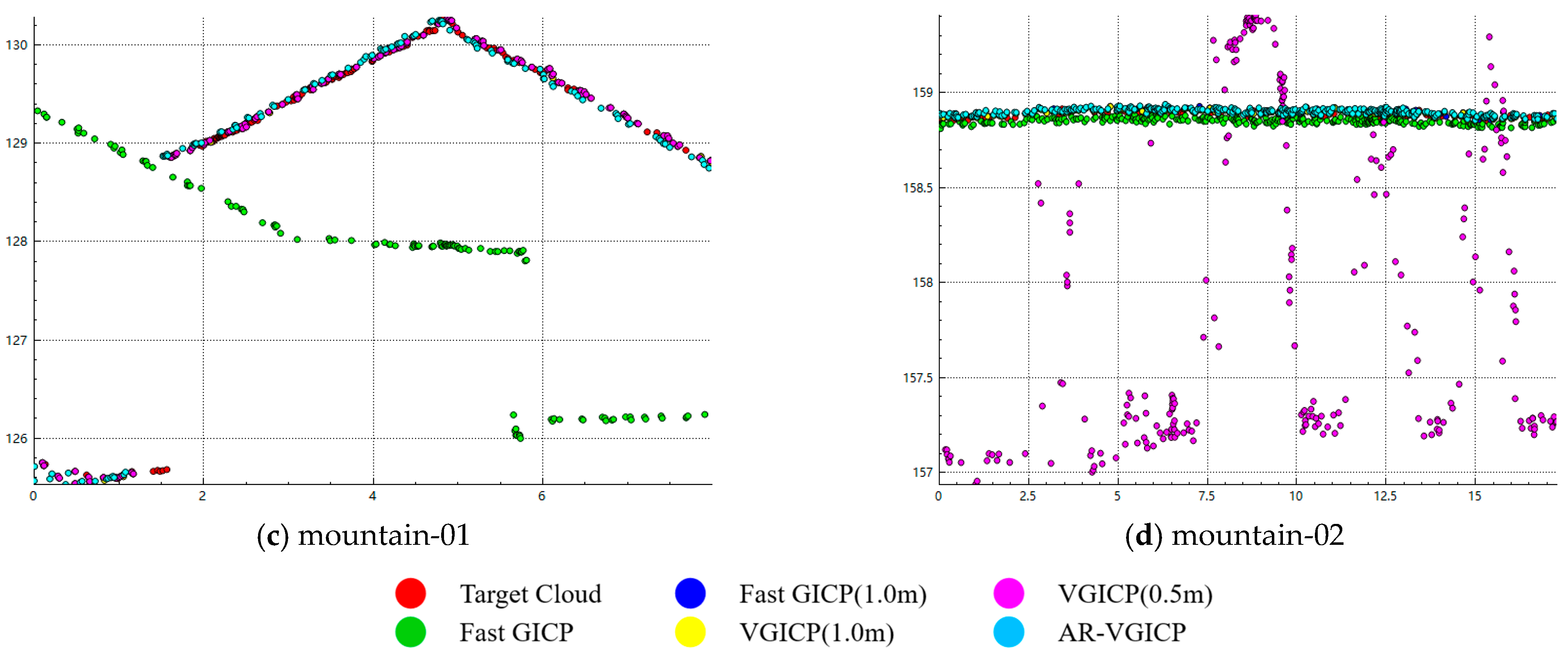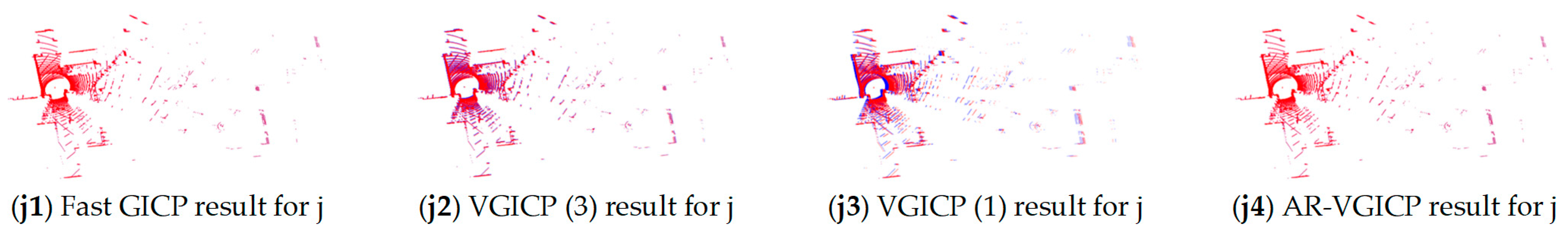 - Koide, K.; Yokozuka, M.; Oishi, S.; Banno, A. Voxelized GICP for Fast and Accurate 3D Point Cloud Registration. In Proceedings of the 2021 IEEE International Conference on Robotics and Automation (ICRA), Xi’an, China, 30 May–5 June 2021; pp. 11054–11059. [Google Scholar]