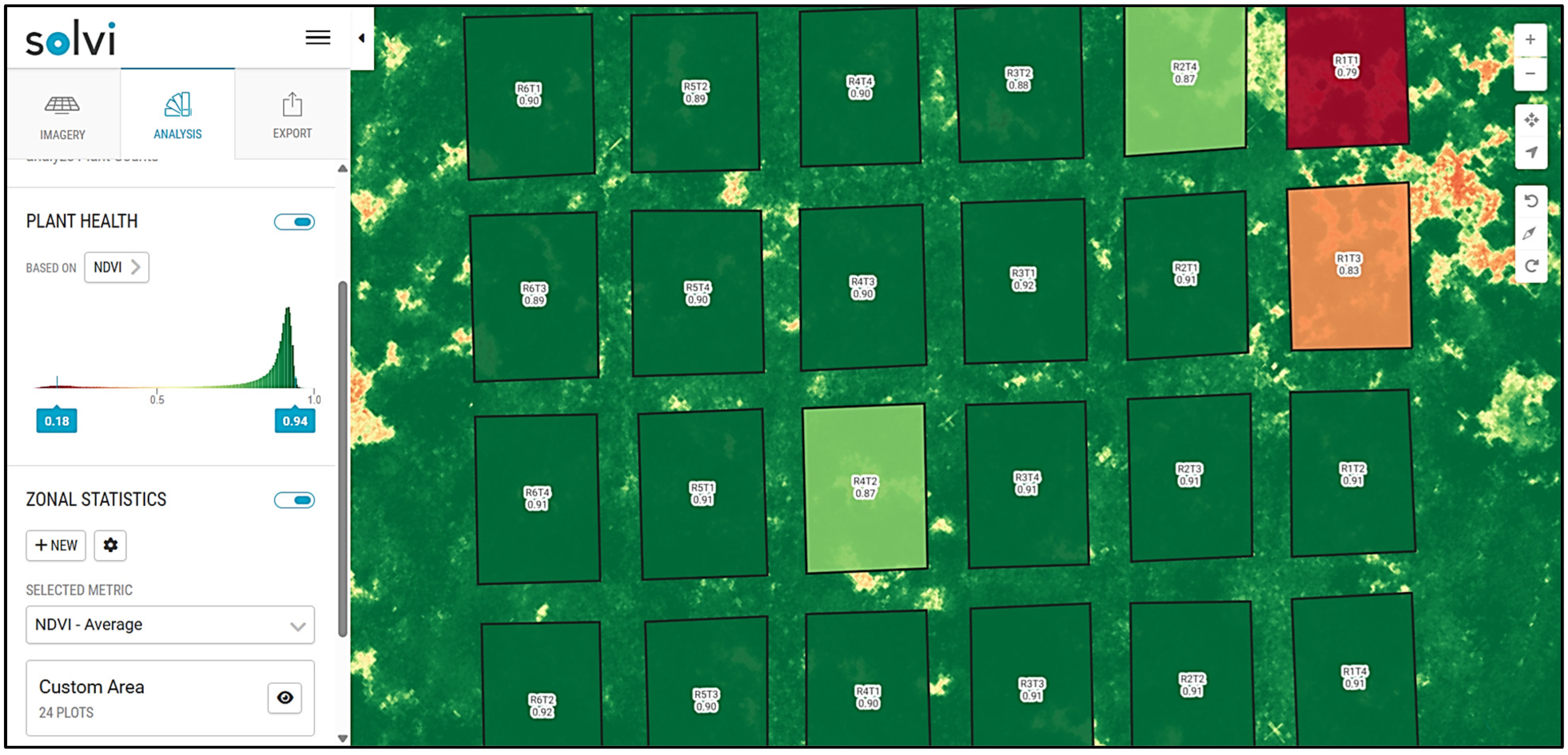 39] likely influence the accuracy of VI-based assessments. In dense wild blueberry canopies, it becomes particularly challenging to detect disease severity when symptoms are obscured within the foliage. Often, disease detection occurs only after visible symptoms like necrosis appear, by which point plant damage is already significant. This delay reduces the effectiveness of early intervention strategies. Moreover, flush growth [