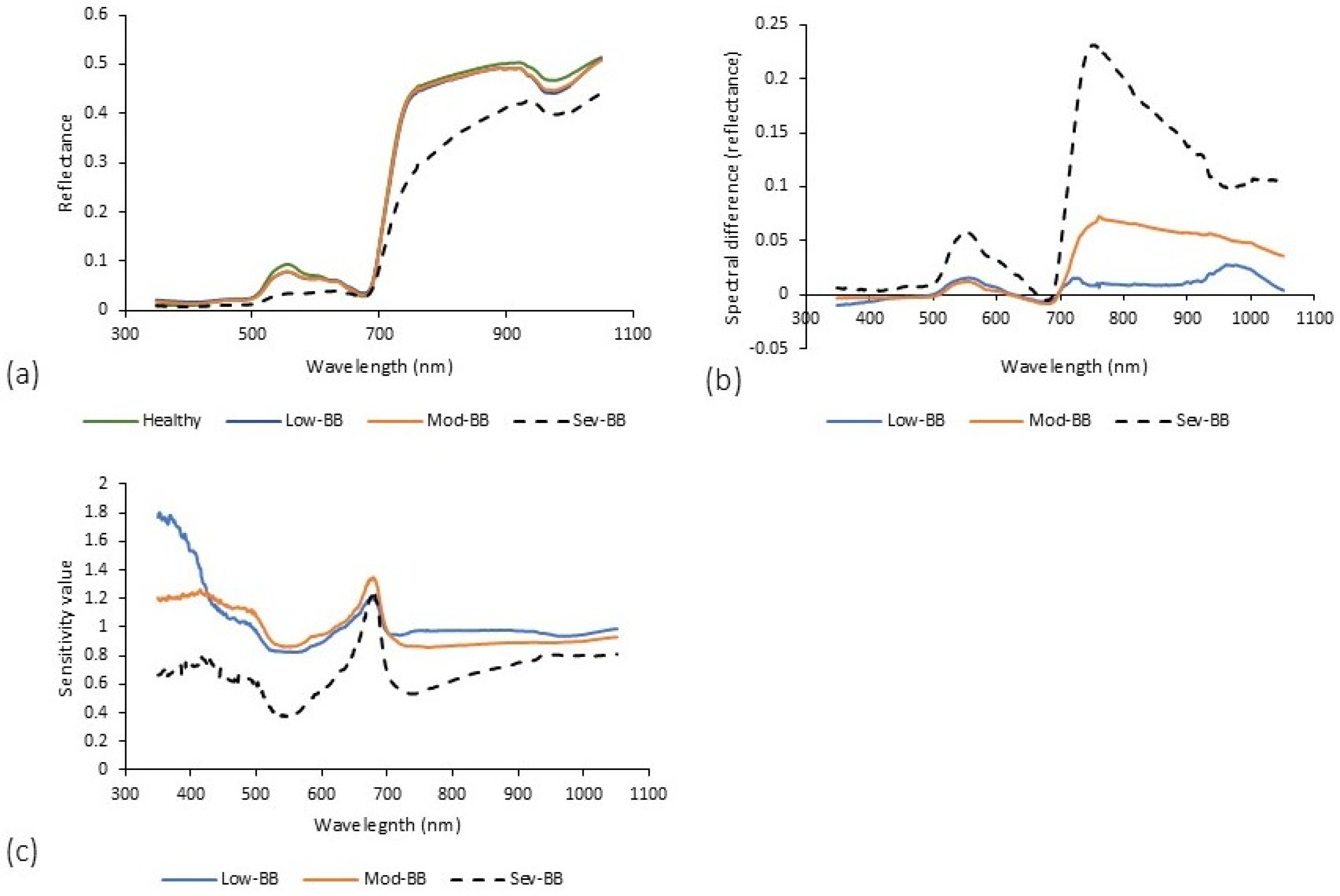 25], who identified selected bands of interest in the identification of BB disease. The 3 sensitive bands identified in this study closely relate to the work of Polder et al. [