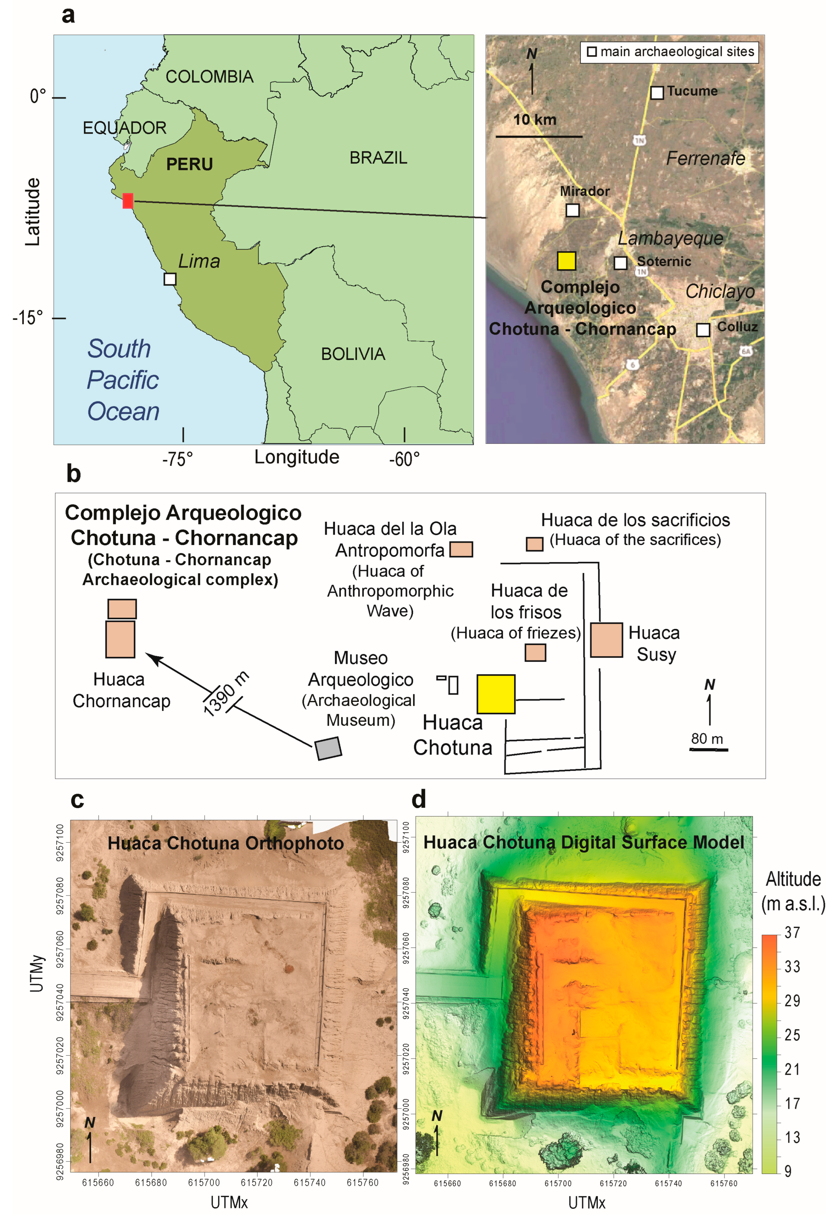 Magnini, L.; Apa, M.I.P.; Gutierrez Cachay, R.F.; Manayalle, M.F.; La Torre, C.E.W.; Ventura, G. Effects of Rain and Sediment-Laden Winds on Earthen Archaeological Sites from Morphometry: A Case Study from Huaca Chotuna (8th–16th Century AD), Lambayeque, Peru. Remote Sens. 2025, 17, 3103. https://doi.org/10.3390/rs17173103